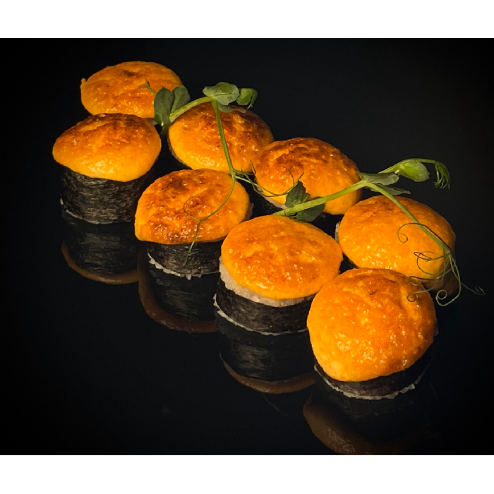 Склад: Рис, норі, сир, авакадо, тунець, спайсі шапочка, мікрогрін